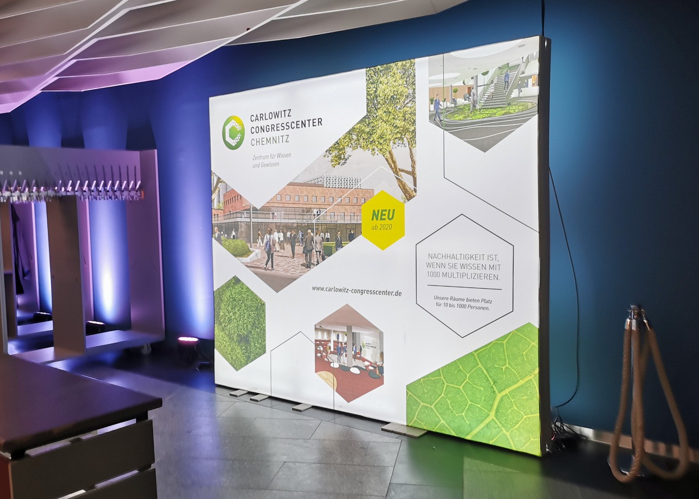Das beleuchtete Pendant dazu: Unsere PIXLIP Systeme. Die Vorteile der Zipperwall, wie z.B. der schnelle Aufbau und der wechselbare Stoffbezug, bleiben erhalten. Die integrierte Hinterleuchtung sorgt jedoch für zusätzliche Aufmerksamkeit und einen strahlenden Auftritt.