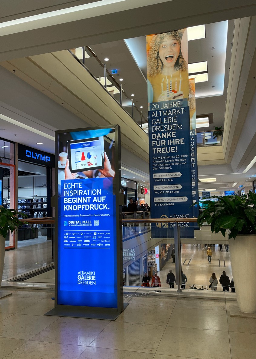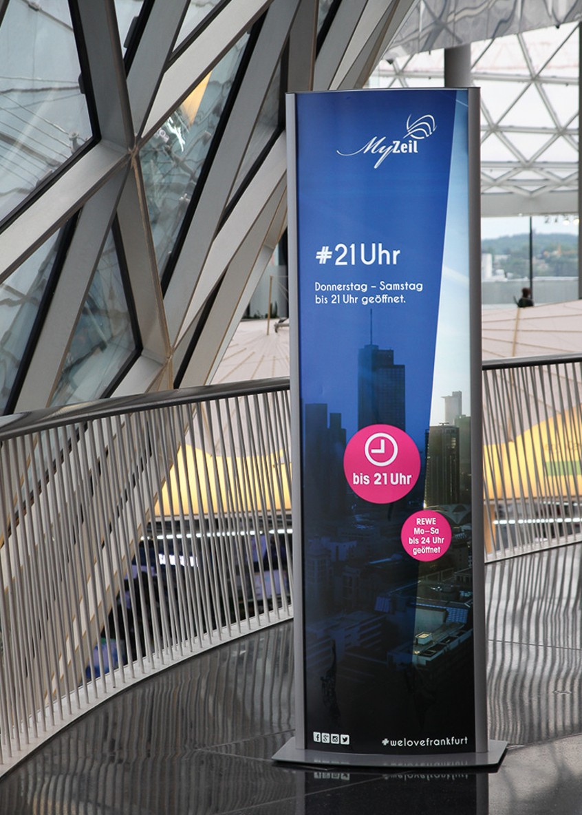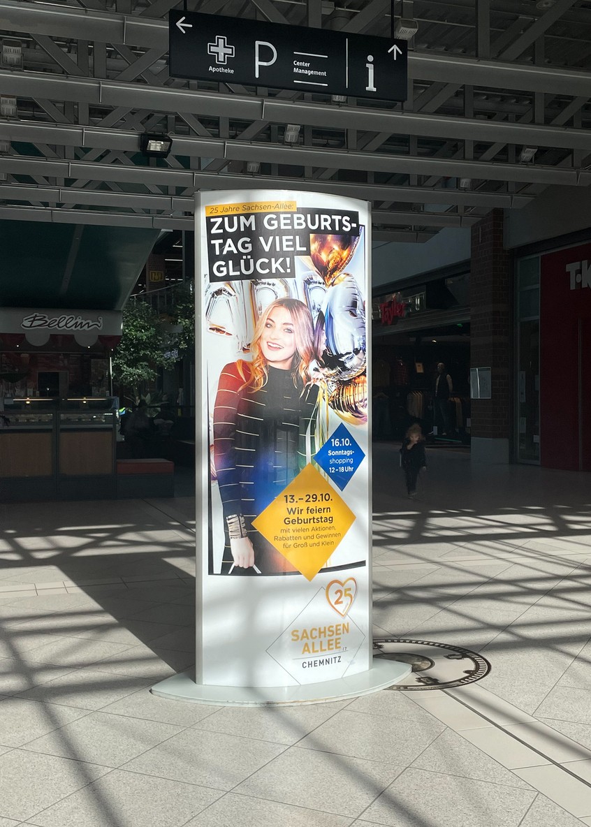 Die Leuchtsäule oder auch Leuchtstele, Leuchtkasten oder Leuchtdisplay ist der Wegweiser mit Fernwirkung für Shopping-Center, Ladenzeilen und auf Messen. Durch die innenseitige Beleuchtung kommen die bedruckten Backlits zu jeder Tageszeit auch in größerer Entfernung zur Geltung. Die reflexionsarme Oberfläche und die gleichmäßige Farbgebung bieten immer einen idealen Blick auf den gedruckten Produkt- oder Weghinweis. Zudem sind Motive schnell und unkompliziert zu wechseln.
