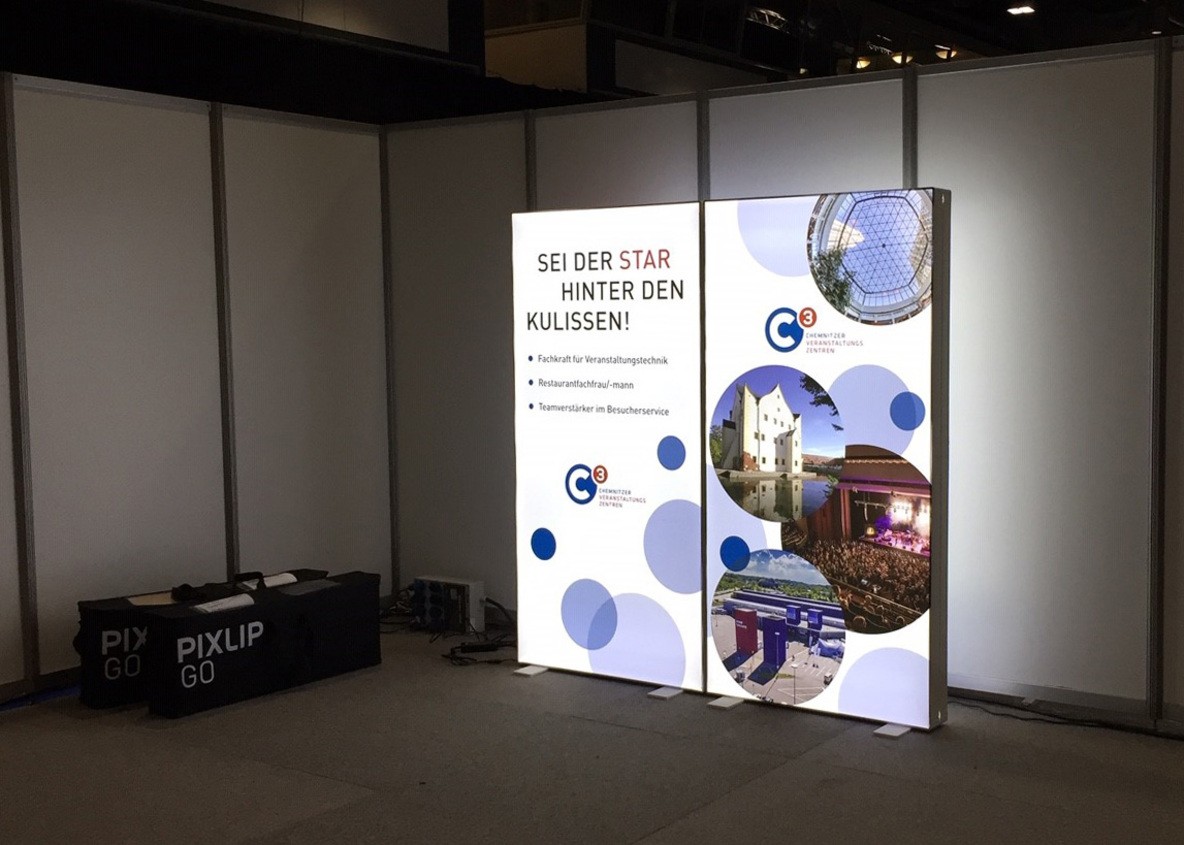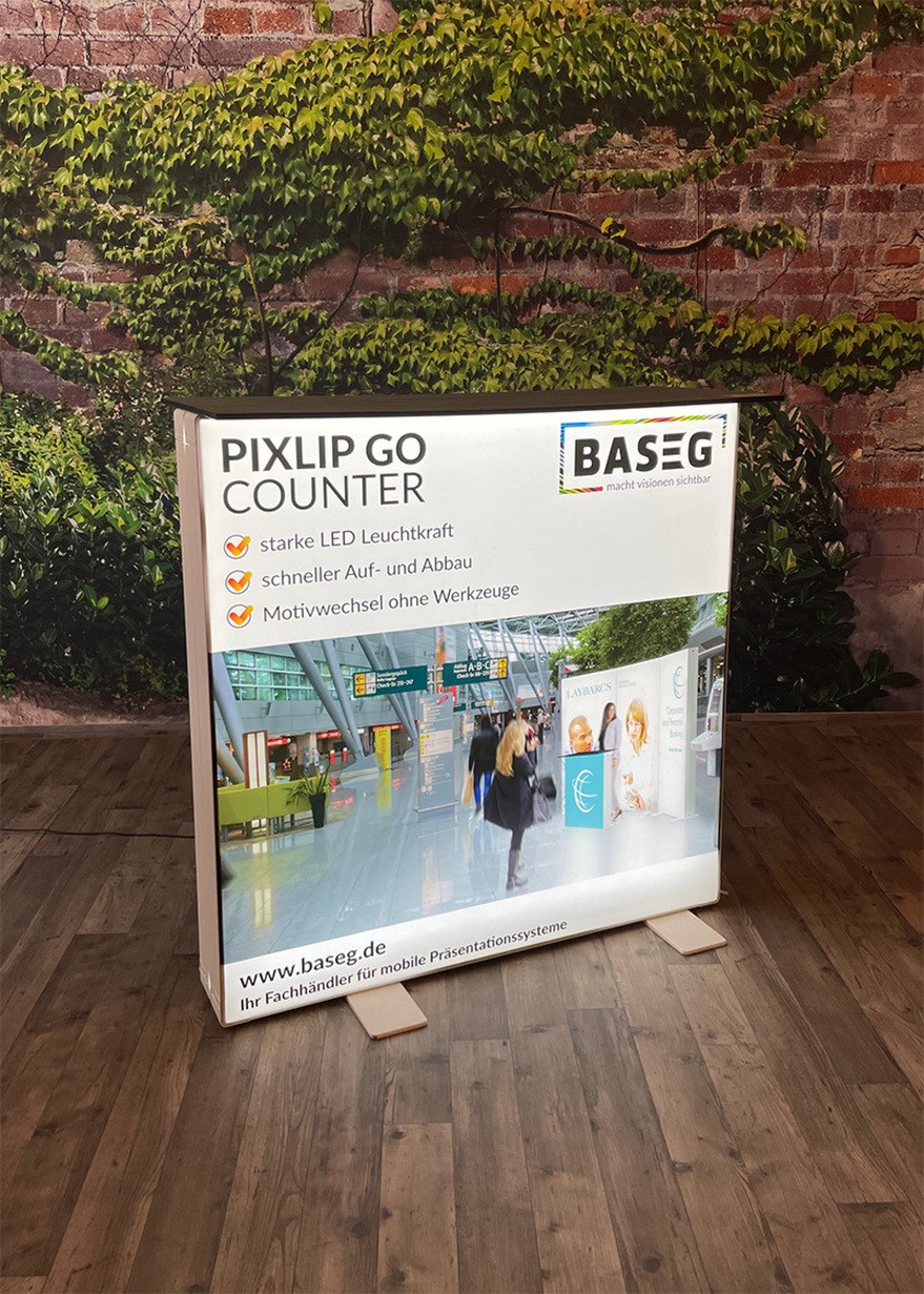 Stechen Sie aus der Masse heraus: Mit der integrierten Hinterleuchtung Ihres PIXLIP Systems sorgen Sie garantiert für Aufmerksamkeit und genießen trotzdem die Vorteile eines mobilen Messesystems. Denn PIXLIP Go kennt kein Werkzeug. Das intelligente und intuitive Stecksystem ermöglicht einen schnellen und einfachen Aufbau innerhalb weniger Minuten.