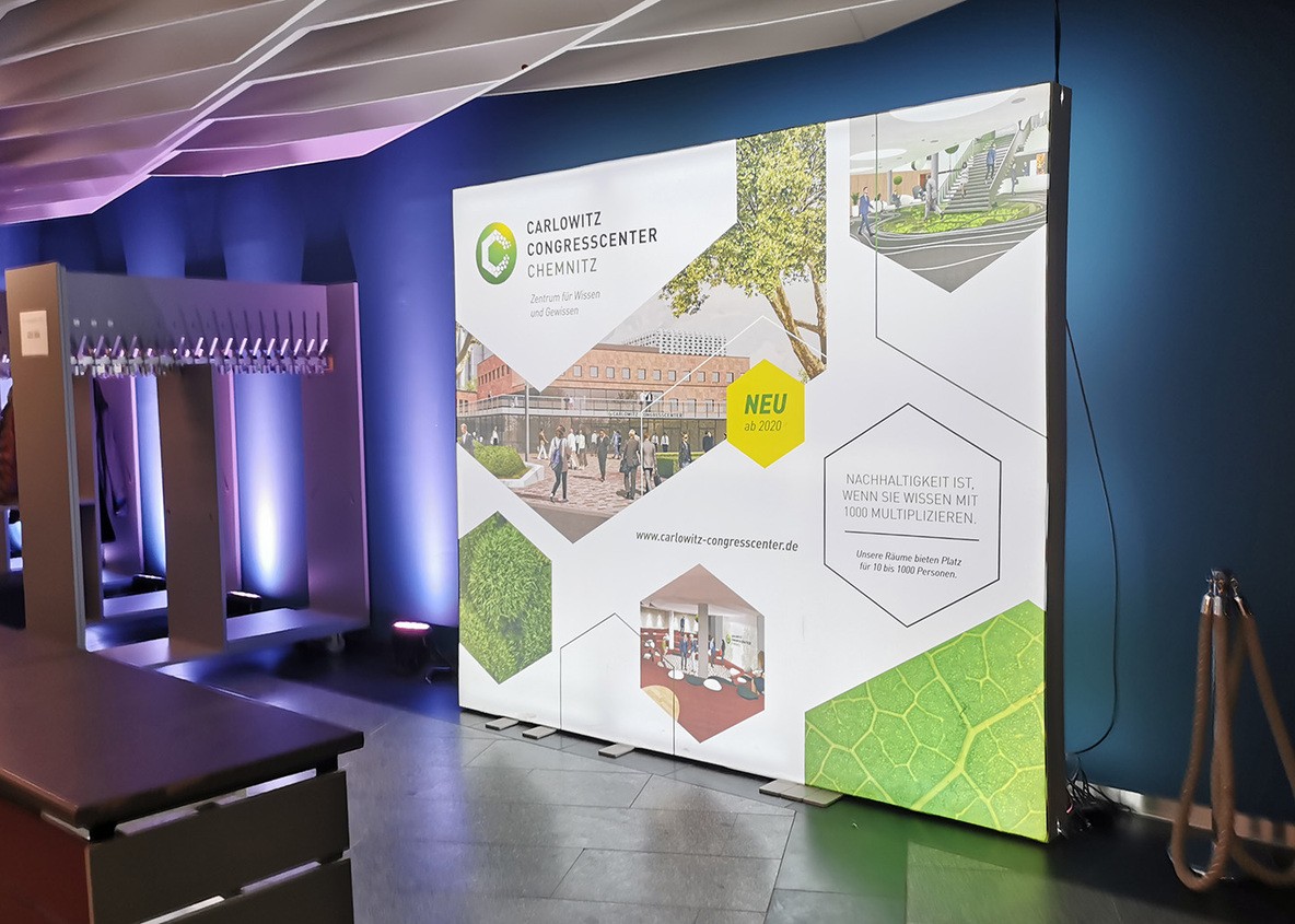 Innovatives, hinterleuchtetes Präsentationssystem für Messen und Veranstaltungen.